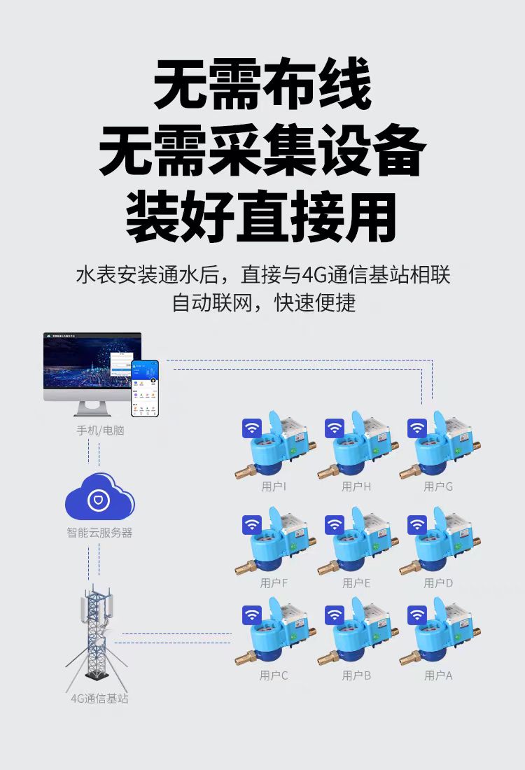 2.遠(yuǎn)程4G預(yù)付費(fèi)智能水表用水計(jì)量