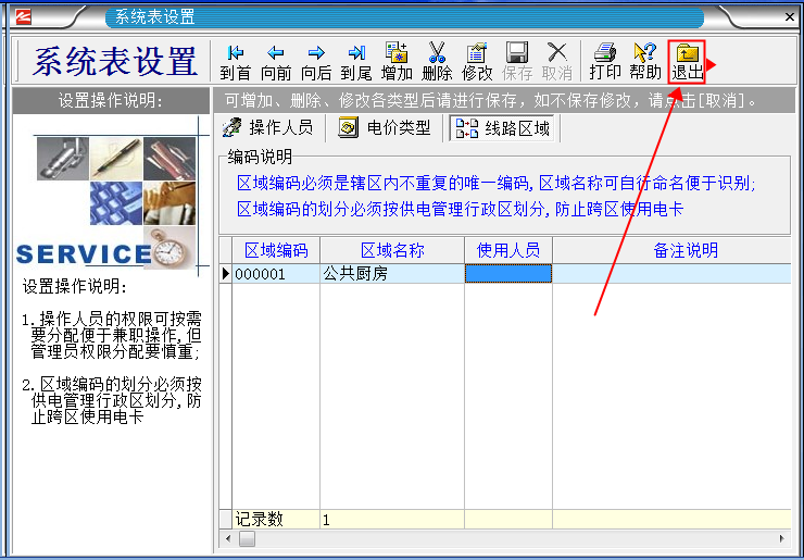 “區(qū)域”的意思就是,你想把電表分成幾個區(qū)域使用,你就設置幾個區(qū)域。如(你有6只電表,想分成ABC三個區(qū)域,A區(qū)的用戶 不能在BC區(qū)使用,B區(qū)的用戶不能在AC區(qū)使用,C區(qū)的用戶不能在AB區(qū)使用。 如果想讓所有的用戶在所有的電表上都能使用的話,就1個區(qū)域就可以了)。