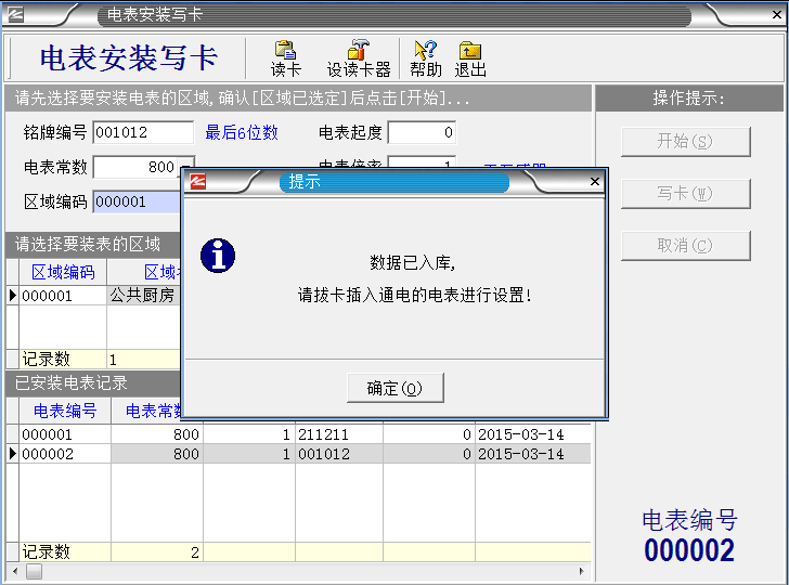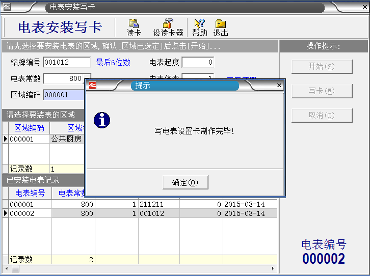 系統(tǒng)設置完成之后,把IC卡插入讀卡器,就進入制作“區(qū)域設置卡”。如下圖