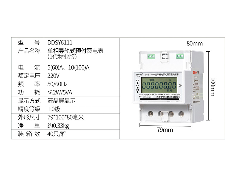 DDSY6111單相導軌式預付費電能表(4P)