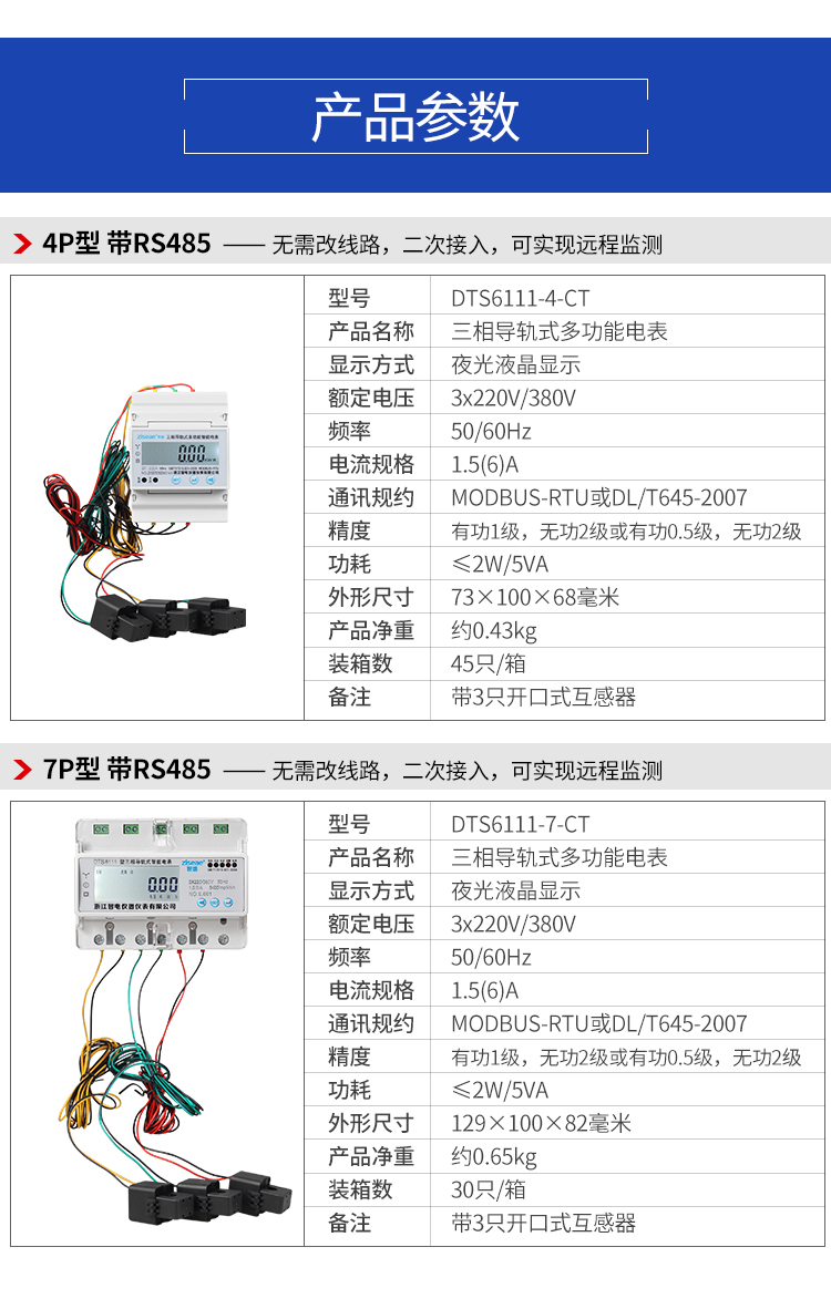 型號:DTS6111-4,三相導軌式電表,二次互感遠程監測電表