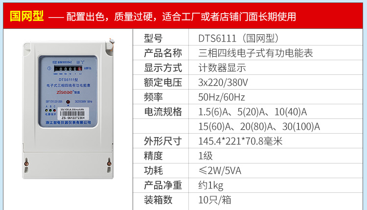 DTS6111型三相四線和DSS6111型三相三線兩種型號三相電子式有功電能表,內部運用了集成電路在經過SMT工藝生產制作而成。結構設計合理,制作工藝先進。跟傳統的電能計量表對比,三相電子式有功電能表的測量準確度高、性能可靠、節能。